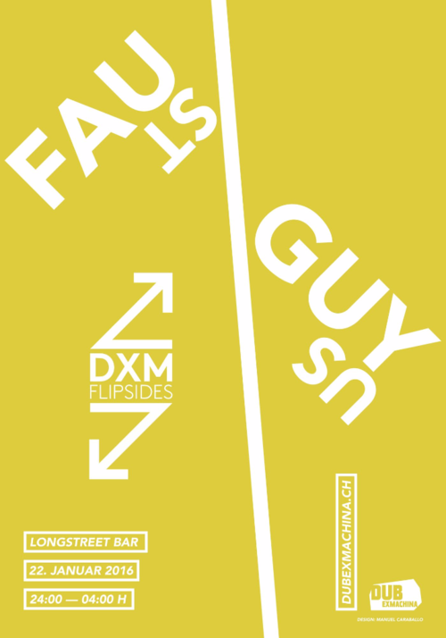 Für das Zürcher Label Dubexmachina durfte ich schon mehrere Plakat-Serien gestalten, was natürlich immer Freude bereitet. Eine davon war für die DXM Flipsides Party-serie, welche jeweils in der Longstreetbar in Zürich stattfand.